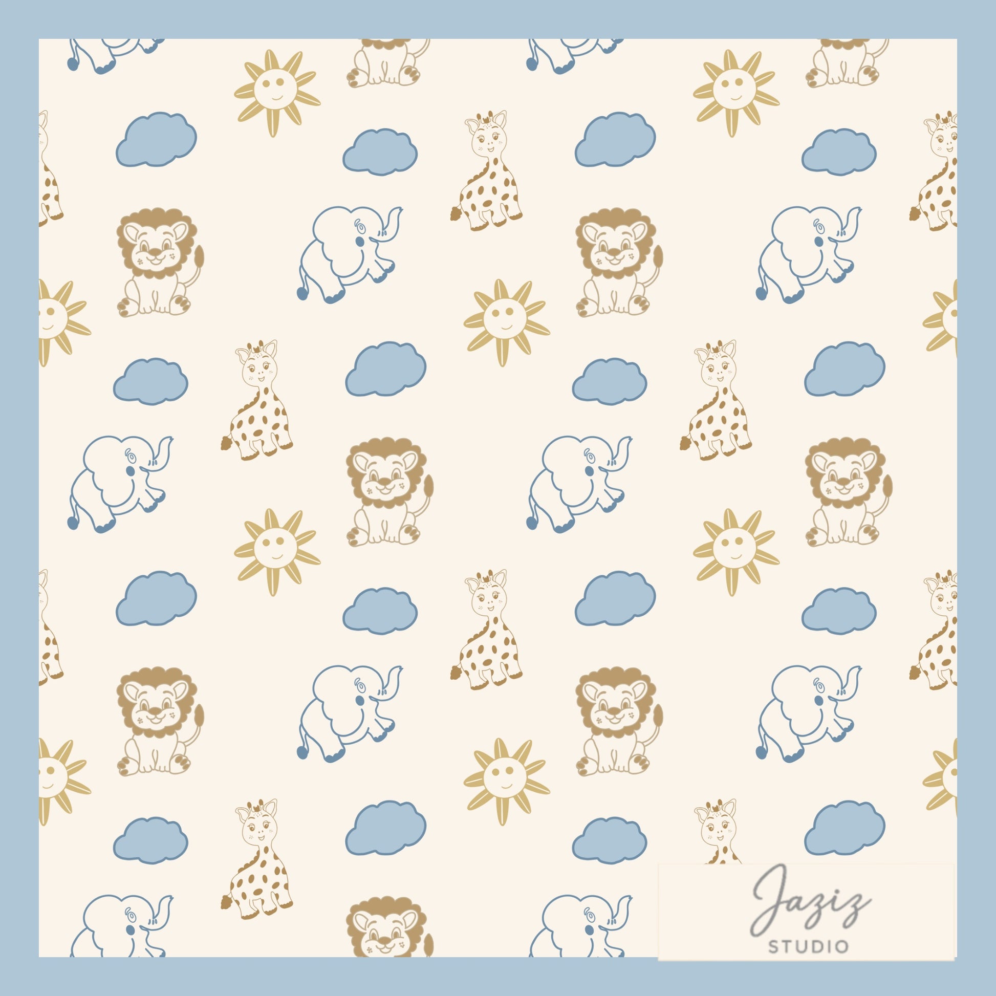 Scandinavian-inspired safari pattern featuring gentle animal illustrations in soft, neutral tones. Designed to suit modern nurseries and children’s spaces, this pattern feels warm, minimal, and timeless.